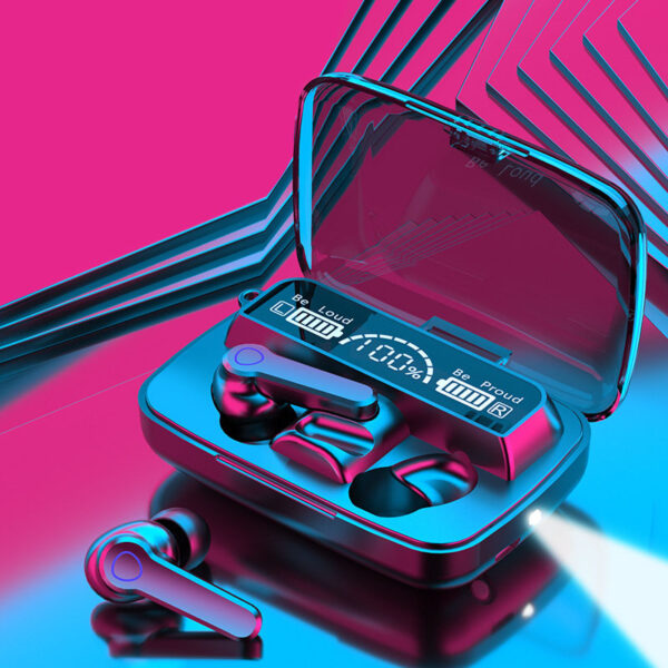 - Estuche de carga con pantalla LED: El estuche de los M19 no solo carga los audífonos, sino que también cuenta con una pantalla LED digital que muestra el porcentaje de batería del estuche y el estado de carga individual de cada audífono.
