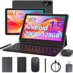 - Tabletas portátiles 2 en 1 con teclado: esta tableta Android de 10.1 pulgadas está equipada con un teclado Bluetooth, mouse inalámbrico y lápiz capacitivo, así como una funda protectora plegable, lo que te permite transformar sin problemas tu tableta de 10 pulgadas en un dispositivo estilo portátil. Esta versatilidad lo convierte en el dispositivo ideal para aquellos que necesitan ser productivos sobre la marcha, ya sea para trabajar, estudiar o jugar.